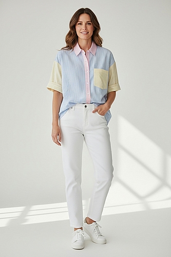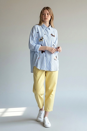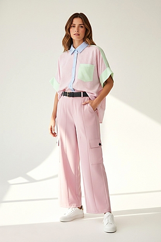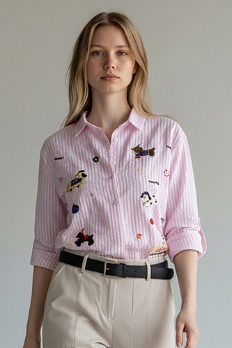 Ροζ ριγέ πουκάμισο με παιχνιδιάρικα μοτίβα