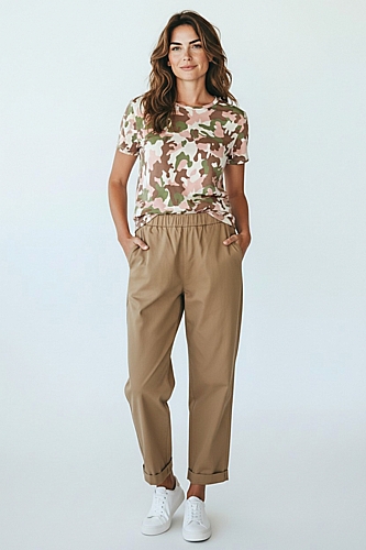 Ψηλόμεση ζιπ-κιλότ με φλοράλ σχέδιο