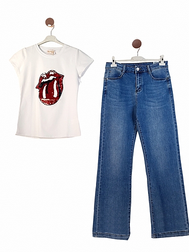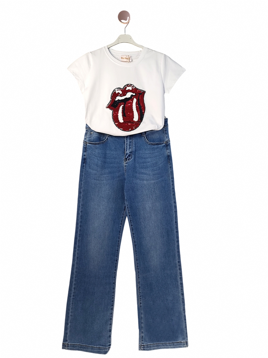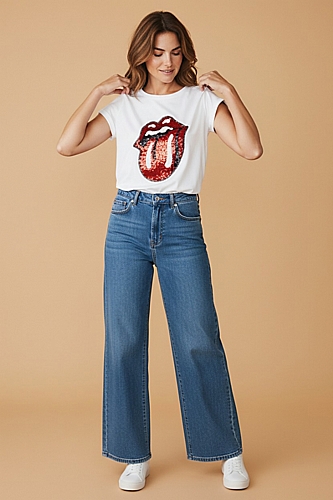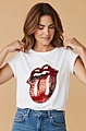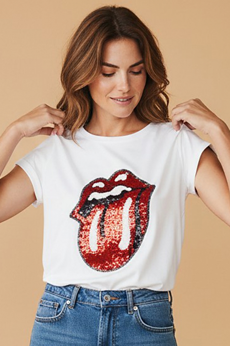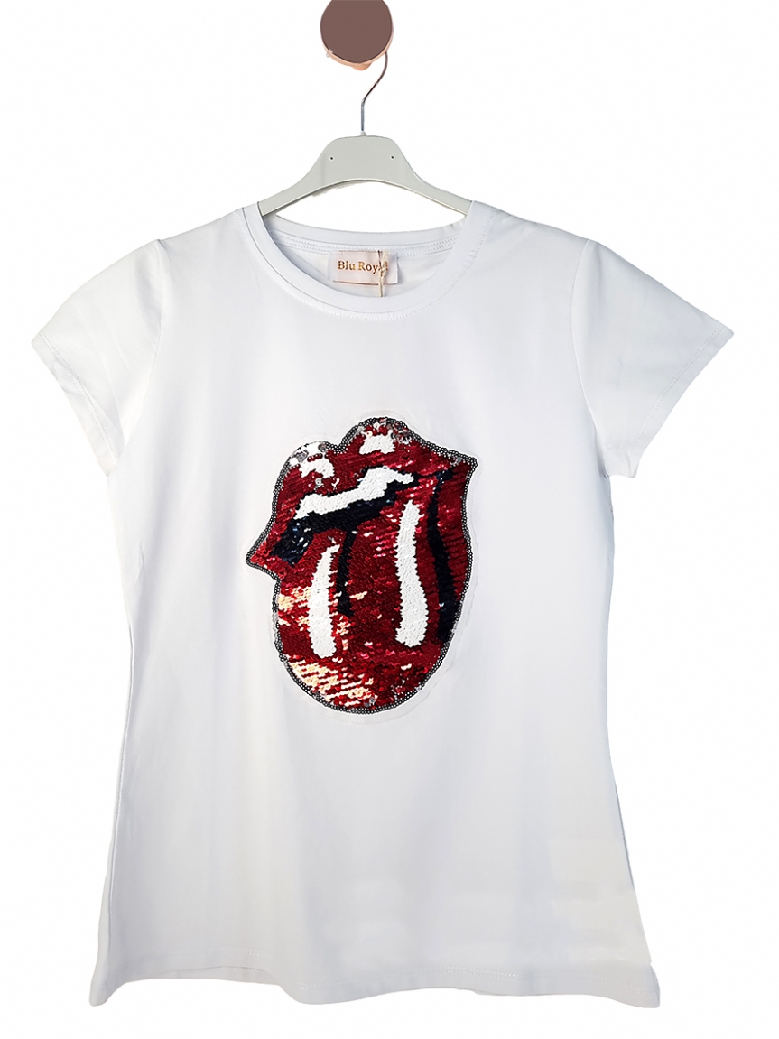 Βαμβακερό t-shirt onesize με στάμπα στο στήθος κόκκινη και λευκή παγιέτα.