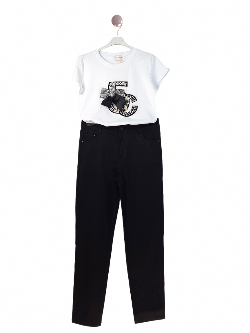 Βαμβακερό t-shirt onesize με στάμπα στο στήθος πέρλες και στρας.
