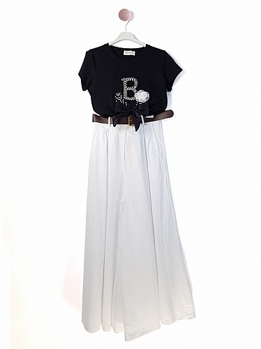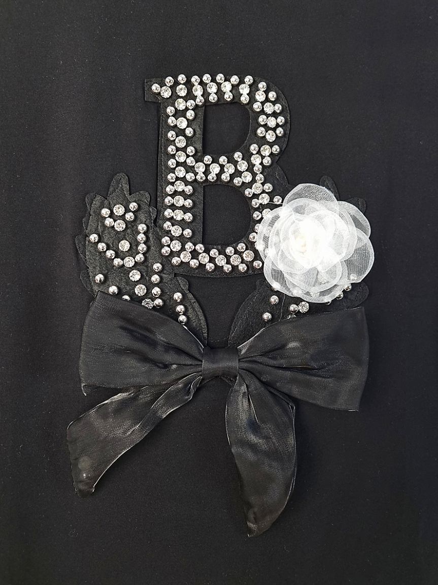 Βαμβακερό t-shirt onesize με πέρλες, κέντημα, φιόγκο και λουλούδι.