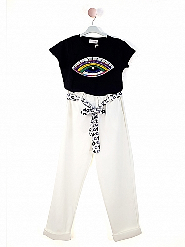 Βαμβακερό t-shirt onesize με πέρλες, κέντημα και χρωματιστά στρας.