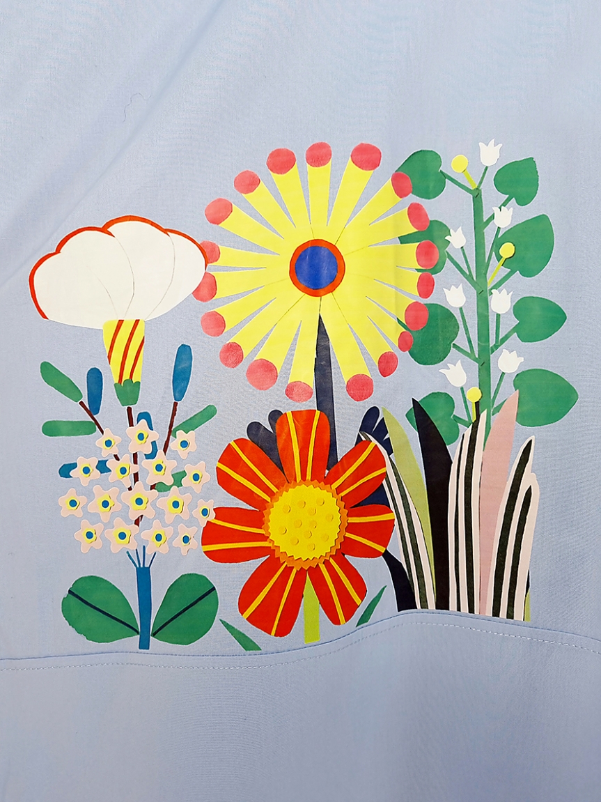 Bαμβακερή onesize μπλούζα με χρωματιστά λουλούδια.