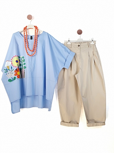 Σιέλ μπλούζα με λουλούδια - Σιέλ