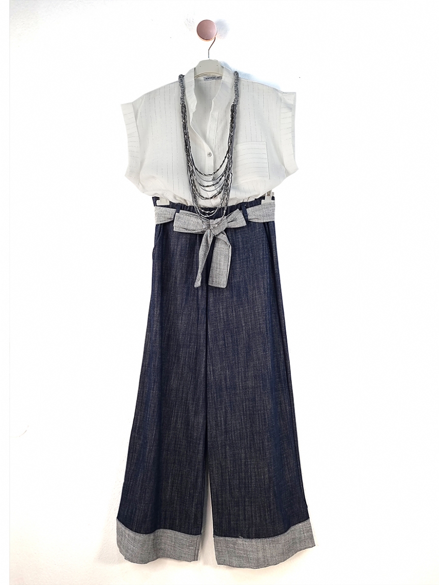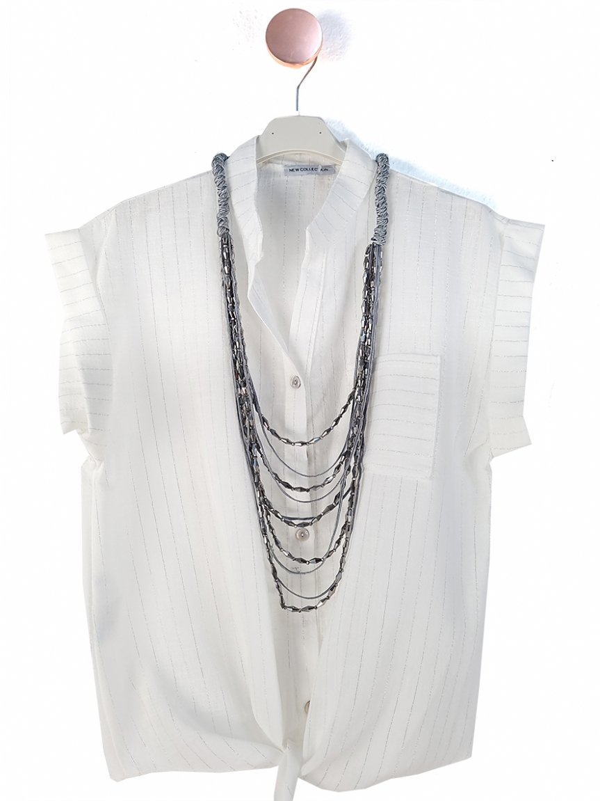 Λευκό πουκάμισο με ασημί ρίγες - Λευκό