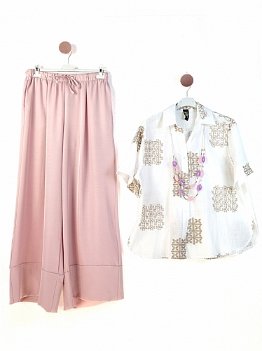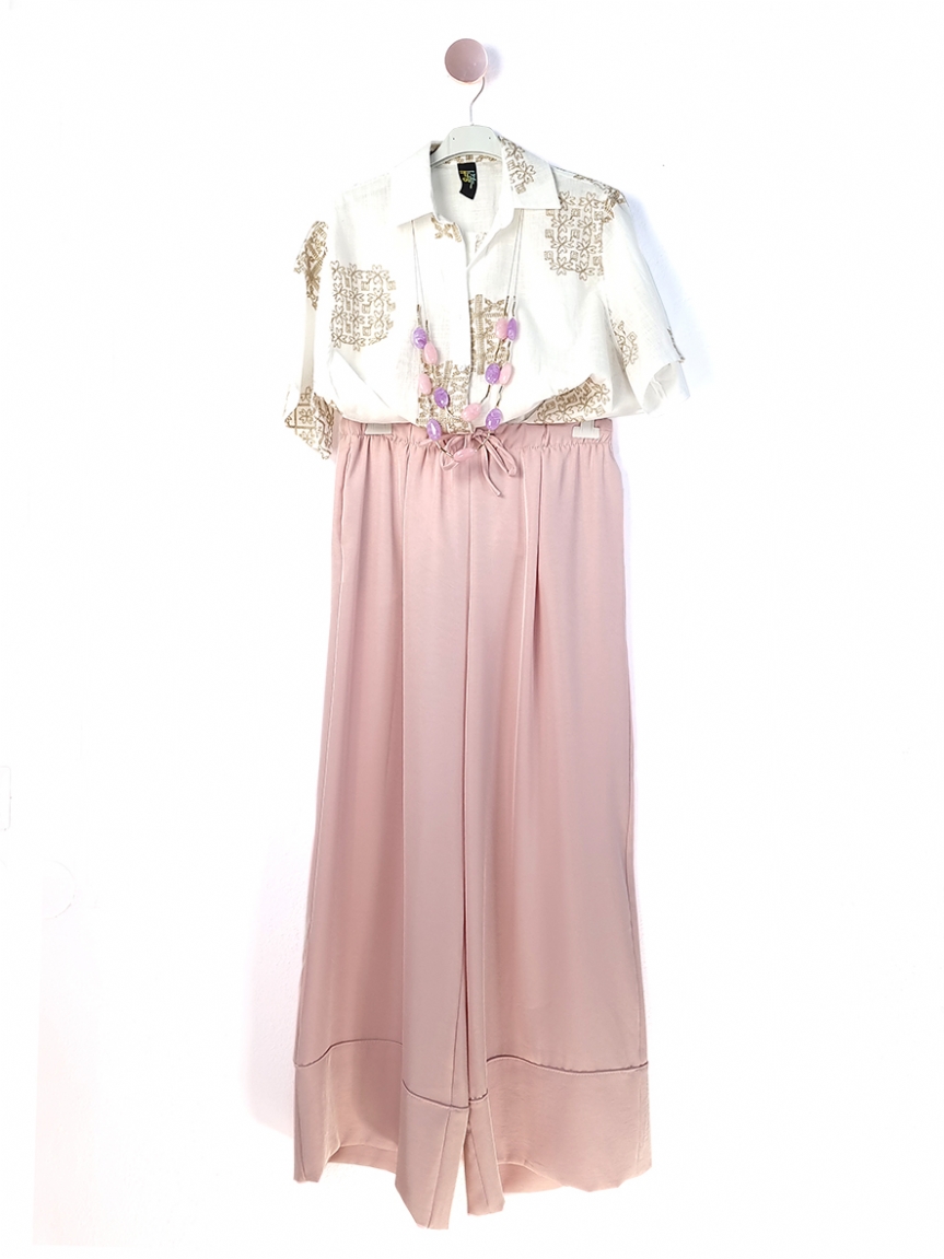 Παντελόνα onesize με πιέτες και λάστιχο στη μέση.