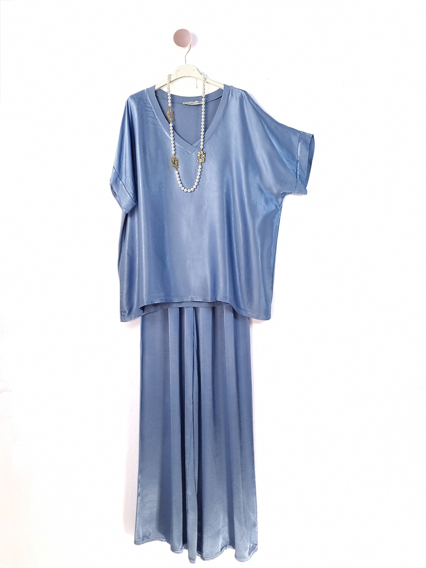 Σετ σατέν onesize με κοντό μανίκι σε φαρδιά γραμμή.