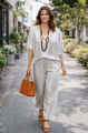 Το σατινέ σετ με μπλούζα και παντελόνα σε αέρινη γραμμή προσφέρει μοναδική αίσθηση απαλότητας και κομψότητας. Η μπλούζα με χαλαρή εφαρμογή χαρίζει άνεση και θηλυκότητα, ενώ η παντελόνα με λάστιχο στη μέση εξασφαλίζει τέλεια εφαρμογή και ευκολία στην κίνηση. Το διακριτικό, elegant ύφασμα το καθιστά ιδανικό για chic καθημερινές εμφανίσεις αλλά και πιο ιδιαίτερες περιστάσεις.