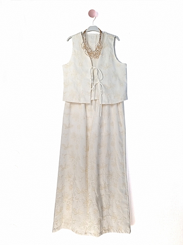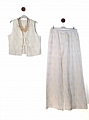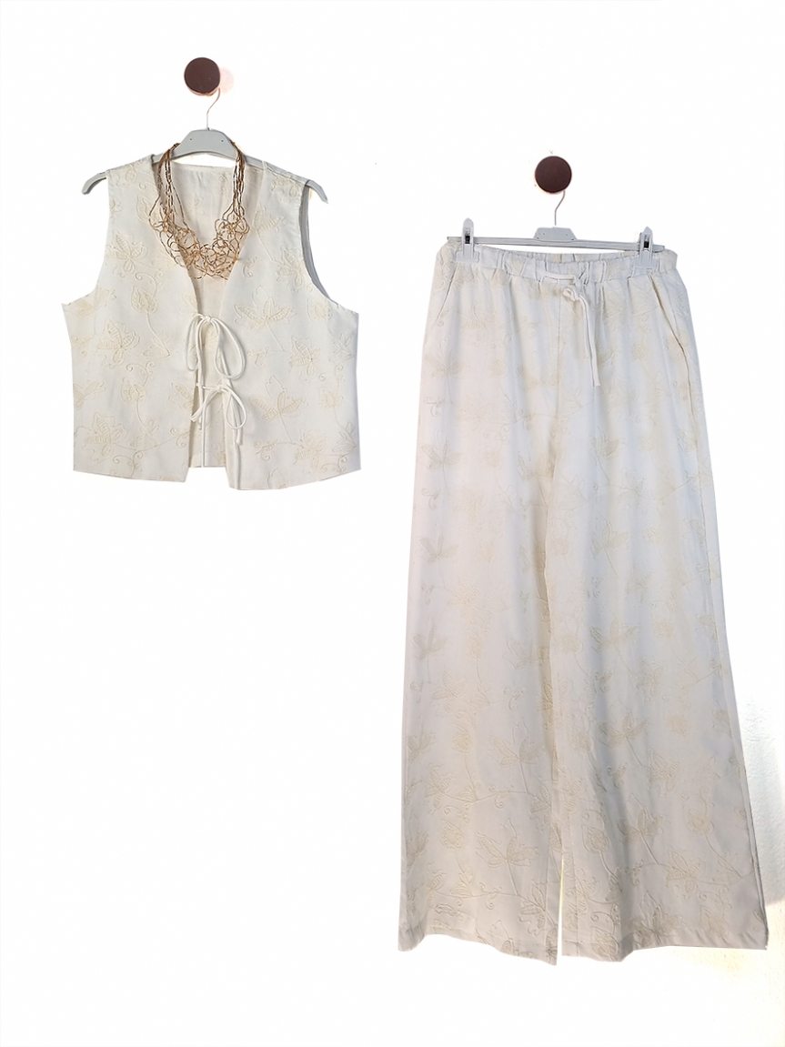 Σετ βαμβακερό onesize με γιλέκο που δένει μπροστά σε φαρδιά γραμμή και μπεζ κεντήματα.