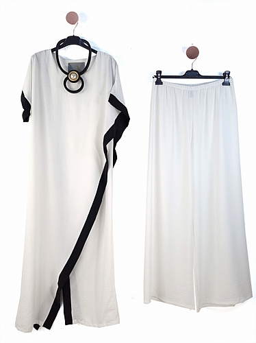 Σετ onesize με μακρυά μπλούζα με άνοιγμα και λευκό τελείωμα.