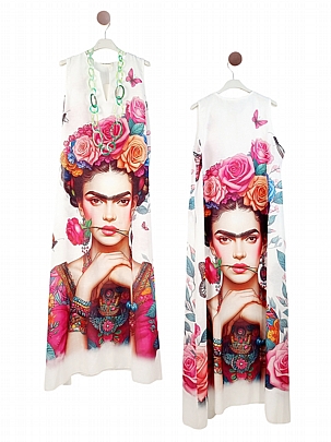 Φόρεμα λινό αμάνικο onesize με V λαιμόκοψη.