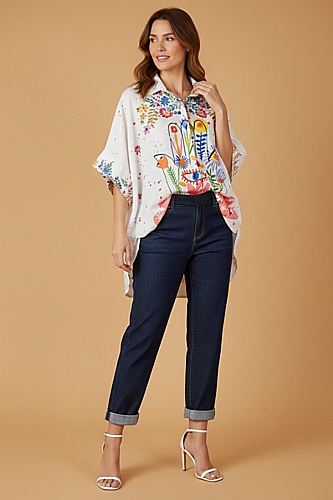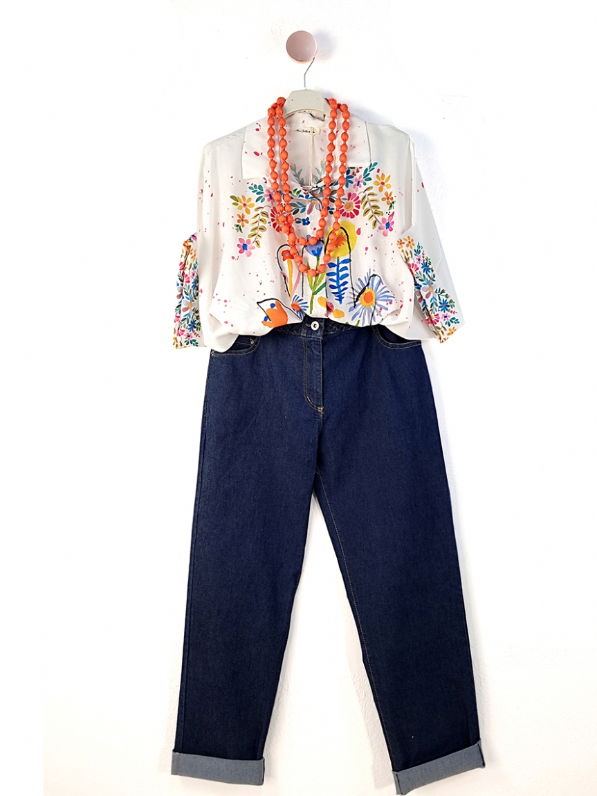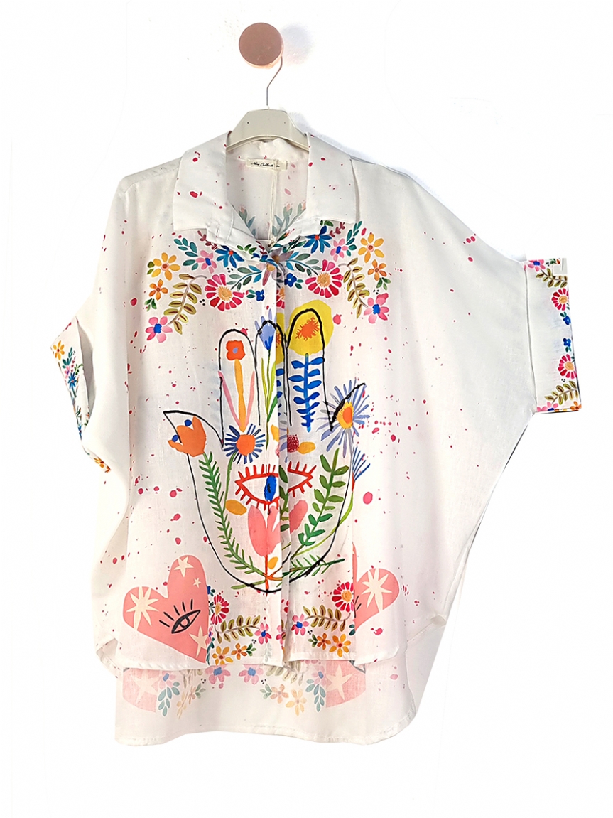 Πουκάμισο λινό onesize με χρωματιστά λουλούδια.