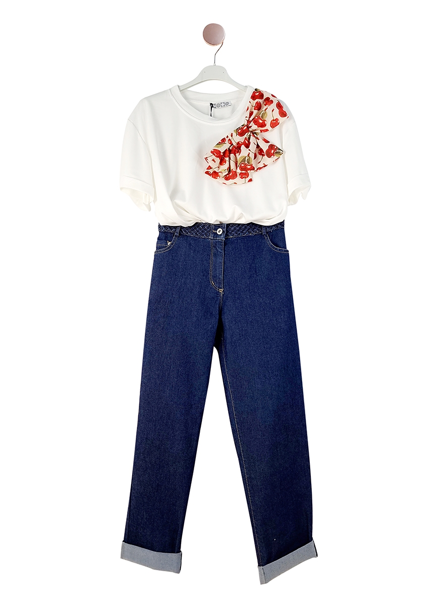 Μπλούζα viscose onesize με διακοσμητικό φιόγκο κερασάκια.