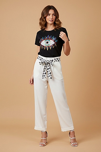 Παντελόνι με floral υφασμάτινη ζώνη - Λευκό