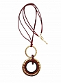 Κολιέ από μπορντό δερματίνη κορδόνι και κρεμαστό χρυσό κύκλο.