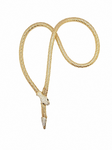 Κολιέ με σχέδιο φίδι σε χρυσό χρώμα και ζιργκόν. Κλείνει με μαγνήτη.
