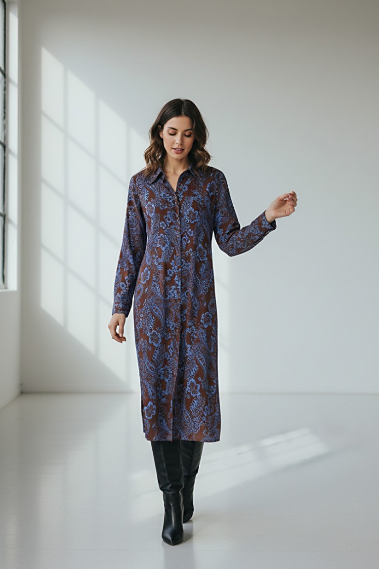 Μακρύ φόρεμα - πουκάμισο με ιδιαίτερο pattern σχέδιο.