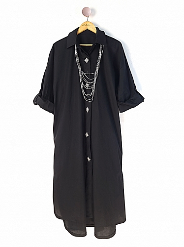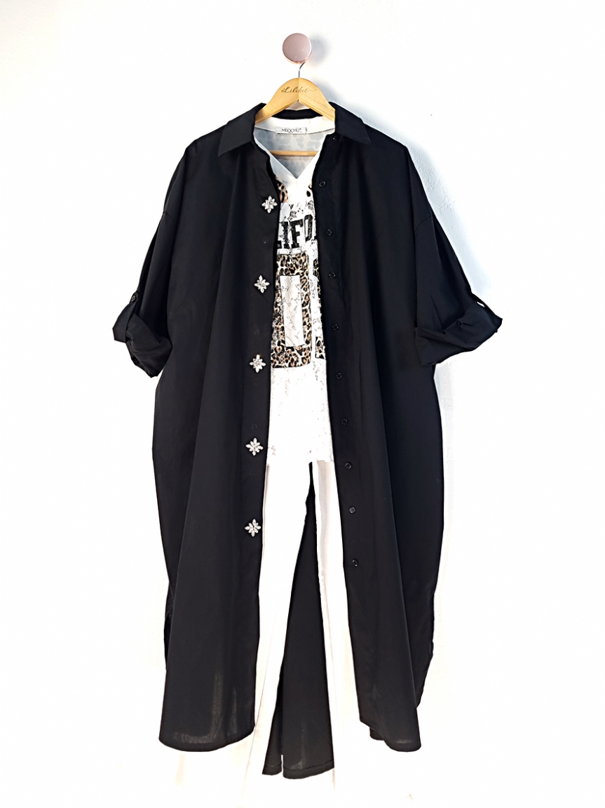 Βαμβακερό oversize φόρεμα με λεπτομέρειες από στρας κουμπιά.