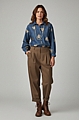 Βαμβακερό denim πουκάμισο με κεντημένες χρυσές καρδιές.