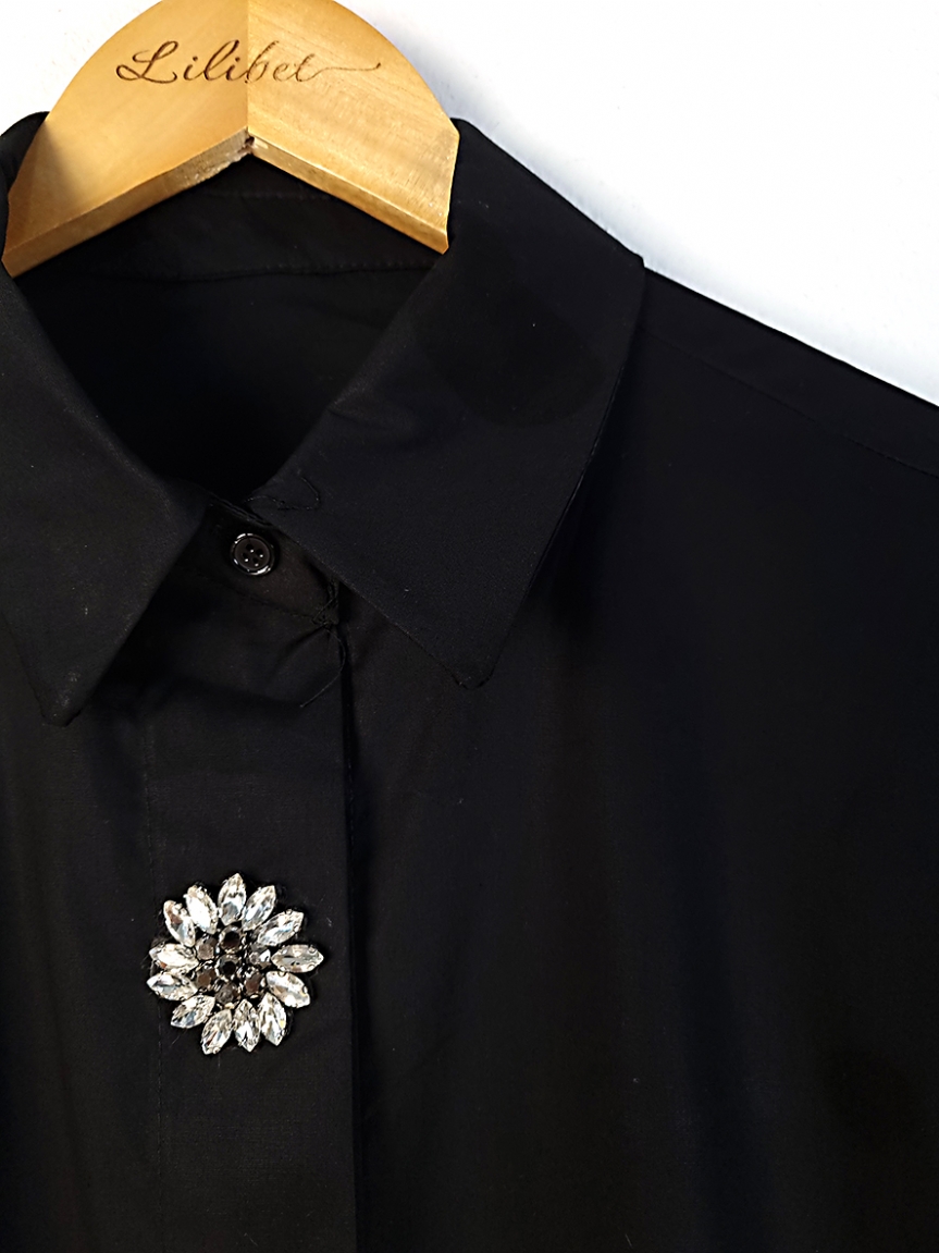 Βαμβακερό oversize πουκάμισο με αποσπώμμενες διακοσμητικές χρυσές καρφίτσες.