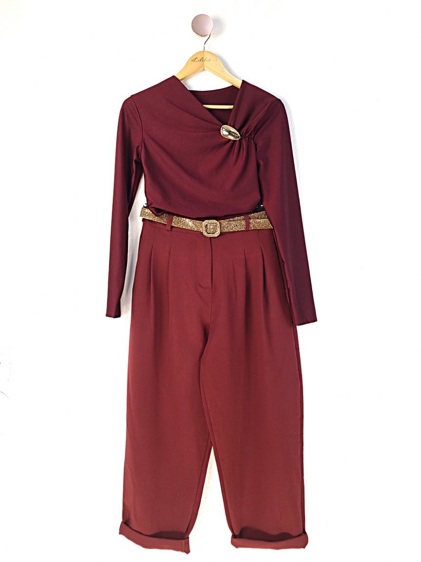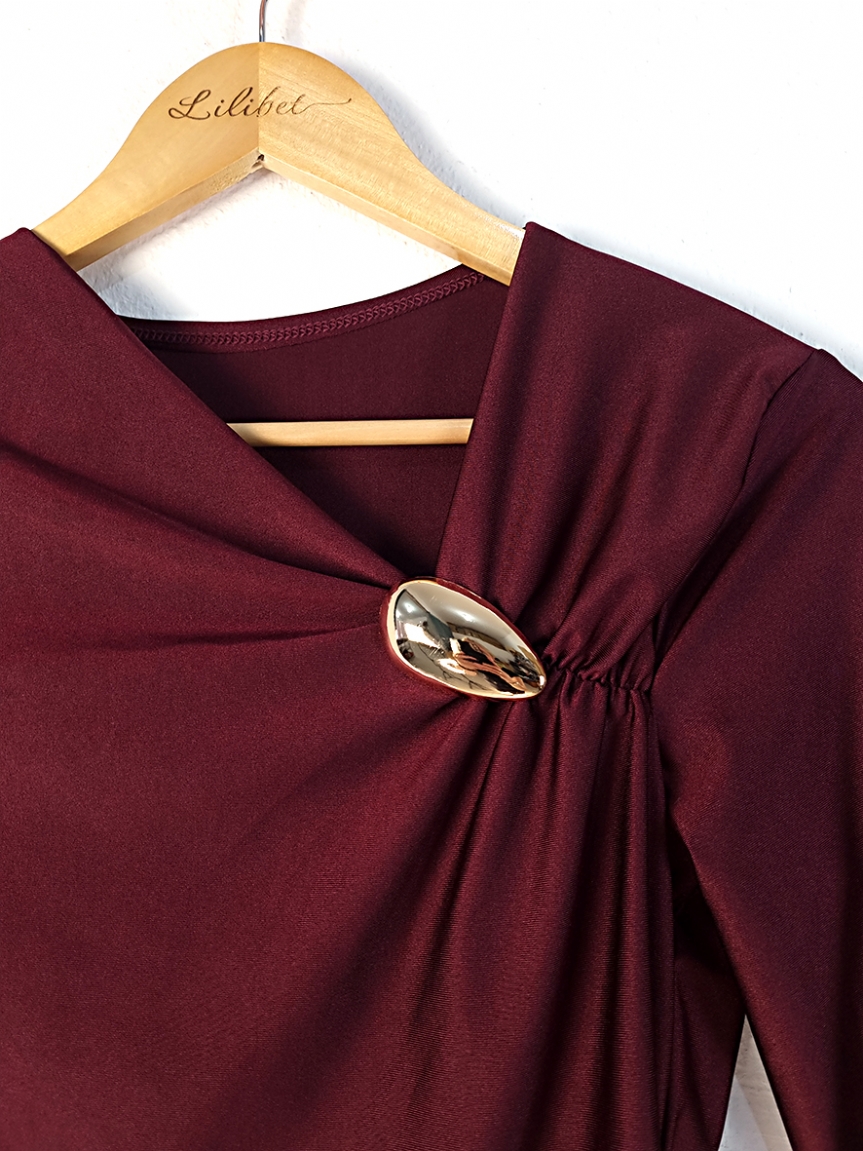 Top ελαστικό με χρυσό διακοσμητικό και ιδιαίτερο σχέδιο με σούρα στο πλάι.