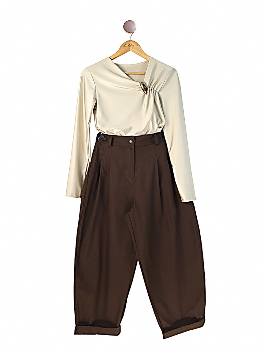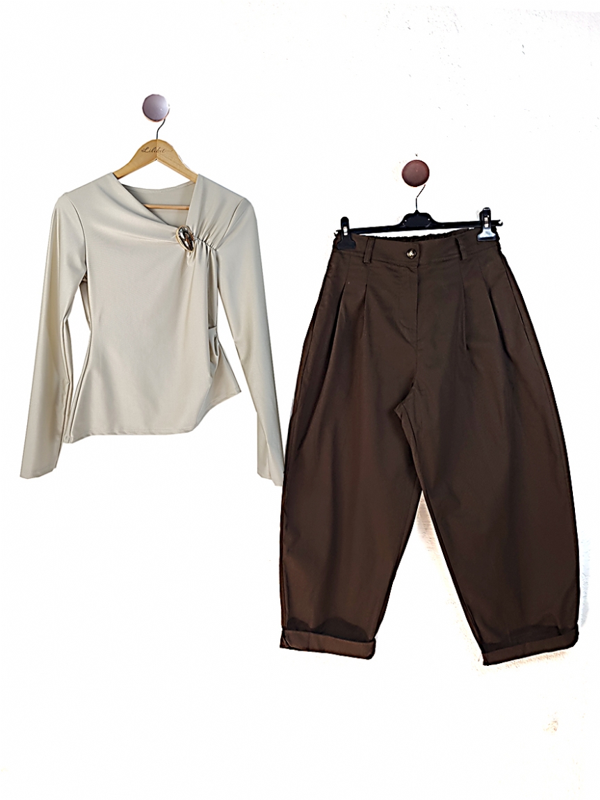 Top ελαστικό με χρυσό διακοσμητικό και ιδιαίτερο σχέδιο με σούρα στο πλάι.