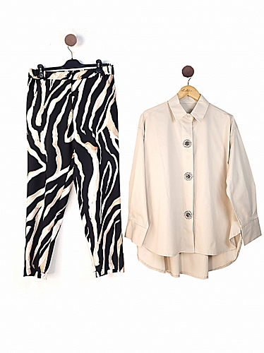 Παντελόνι animal με τσέπες μαύρο φόντο και μπεζ εκρού print.