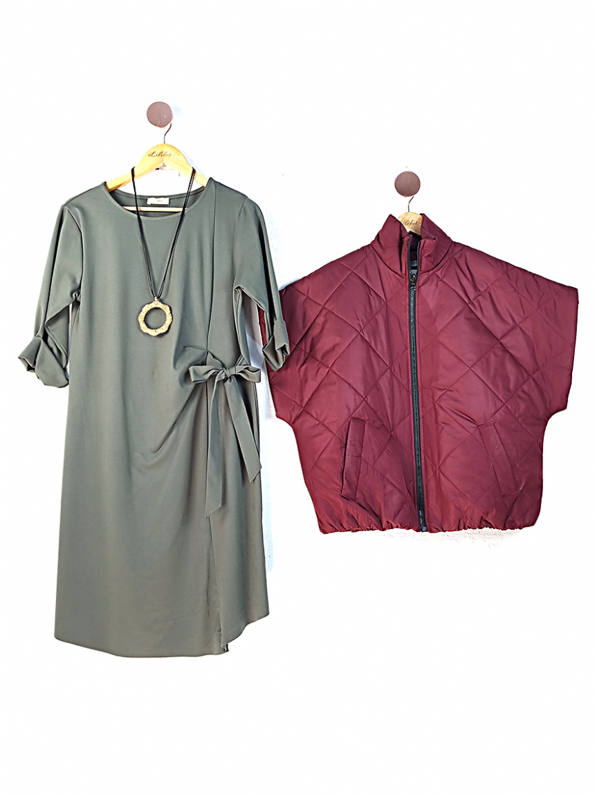 Φόρεμα με δέσιμο στο πλάι - Χακί