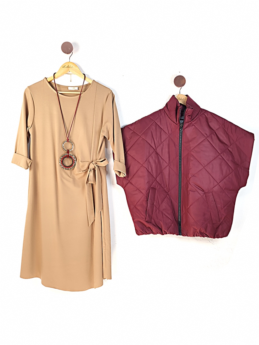 Φόρεμα με δέσιμο στο πλάι - Μπεζ