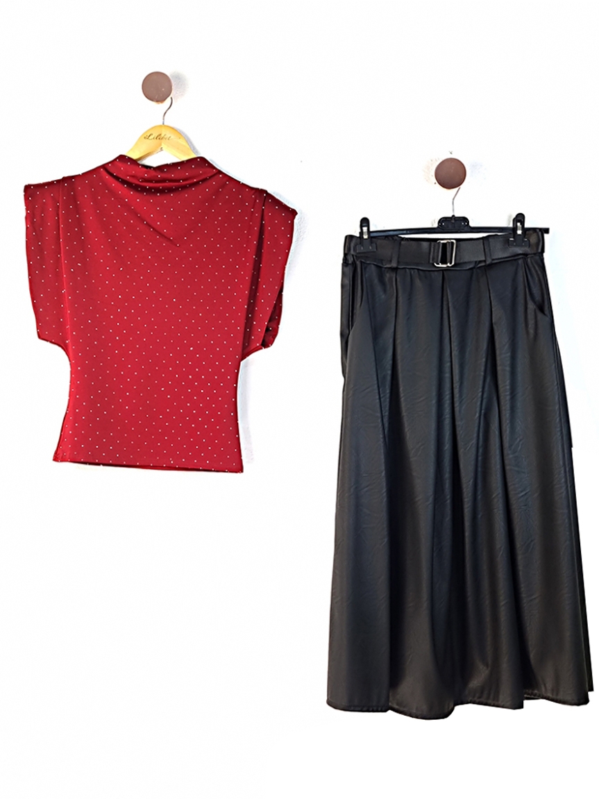 Μπλούζα με στρας και ιδιαίτερο γιακά.
