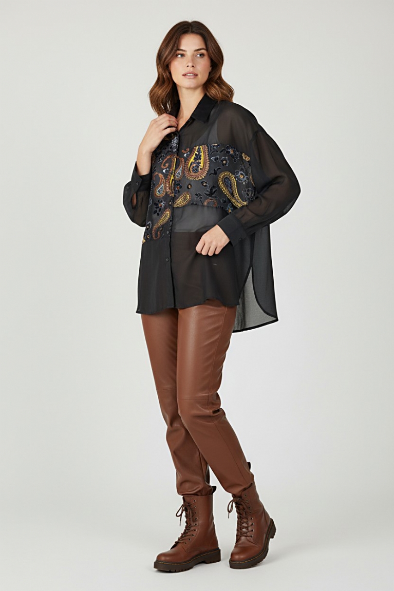 Ιδιαίτερο glamour πουκάμισο, ημιδιάφανο, με σχέδιο από βελούδο σε ιδιαίτερους χρωματισμούς.