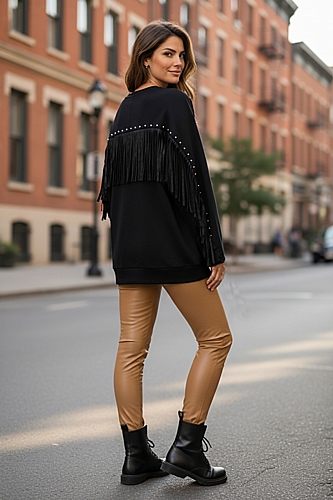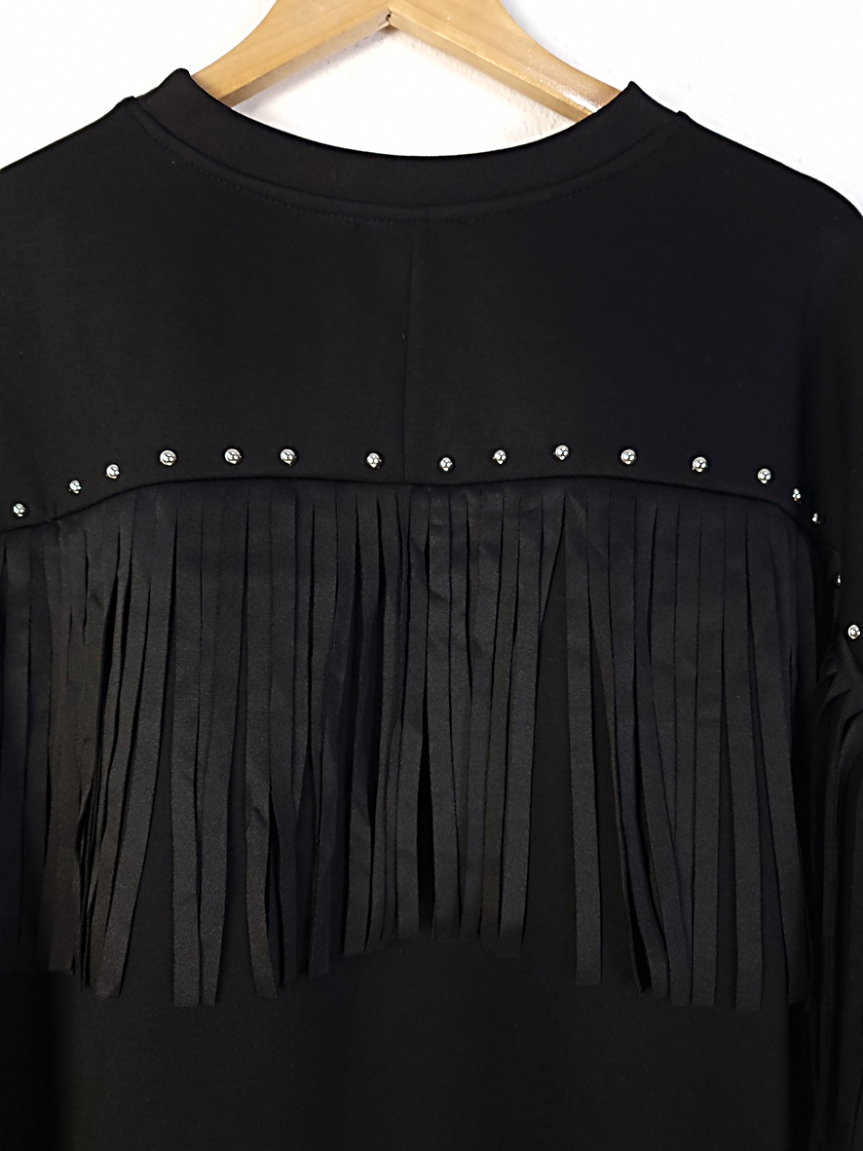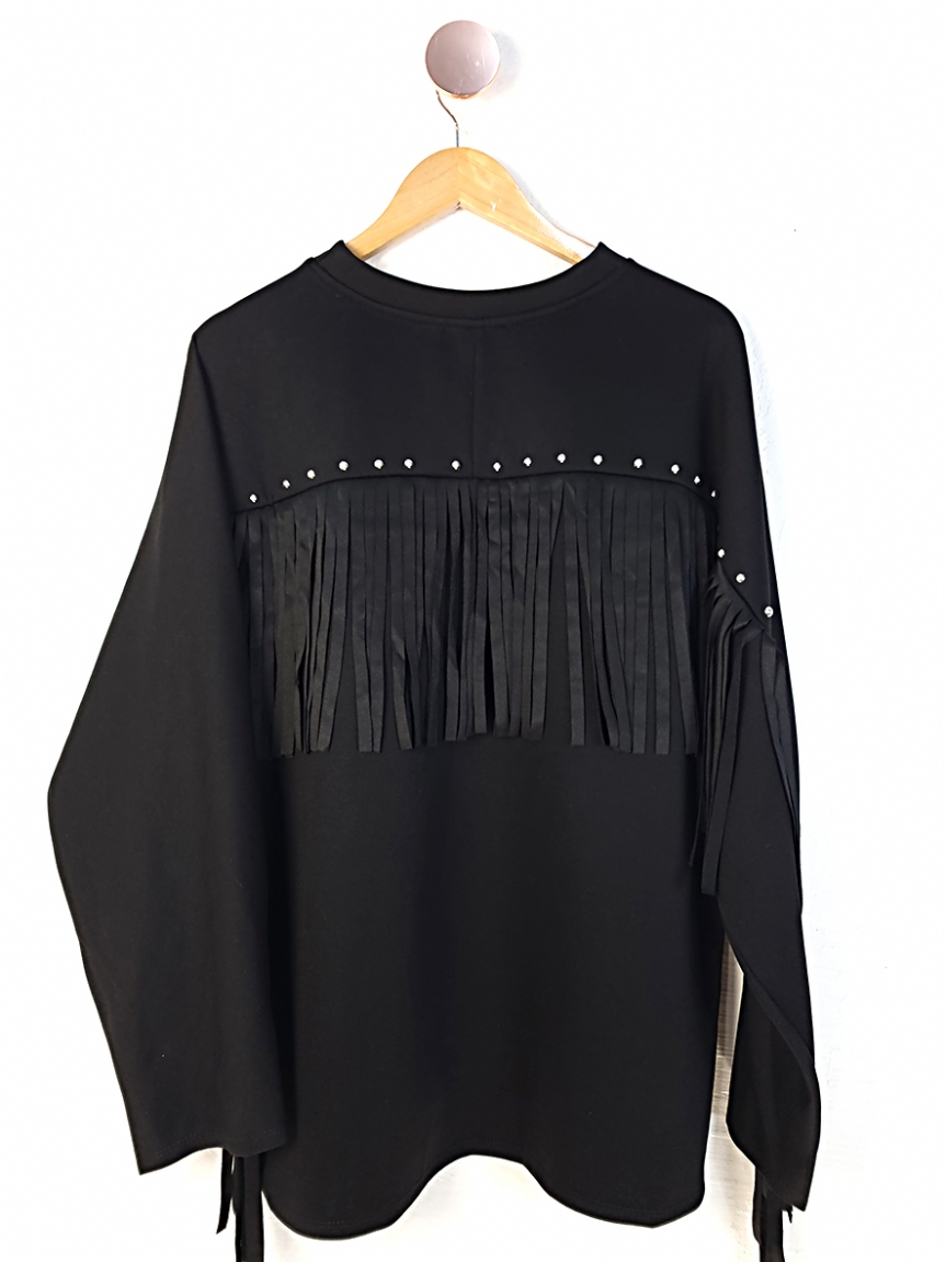 Oversize μπλούζα με κρόσια στα μανίκια και στην πλάτη.