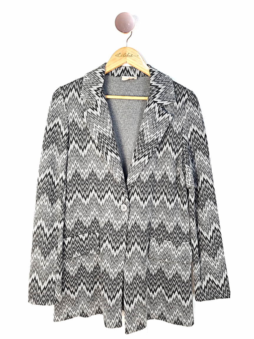 Με σχέδιο ζικ ζακ, διακοσμημένο με ασημί λεπτομέρειες μέσα στο νήμα.