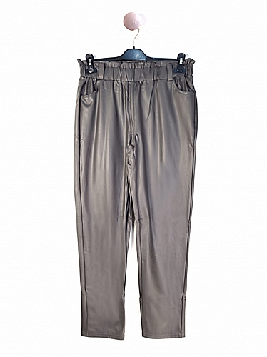 Παντελόνι από συνθετικό δέρμα με ψηλή μέση και γραμμή που στενεύει στο τελείωμα.