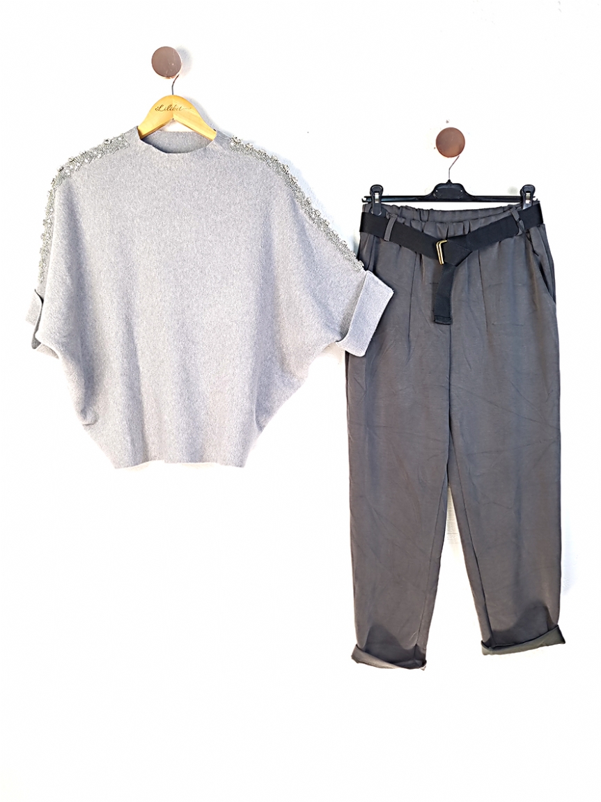 Απαλή πλεκτή μπλούζα με υπέροχο σχέδιο από στρας που ξεκινάει από τους ώμους και τελειώνει στο μανίκι.