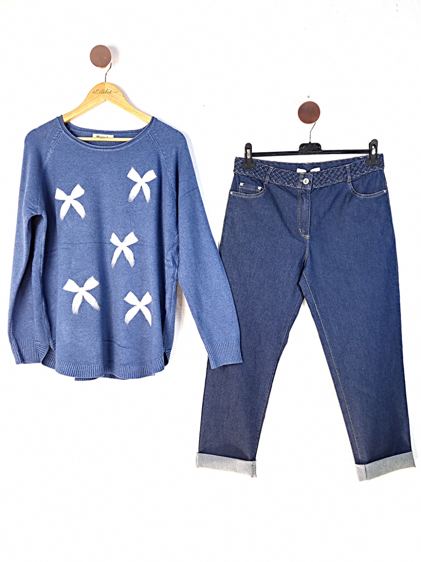 Απαλή πλεκτή μπλούζα με φιογκάκια και διακοσμητικές πέρλες.