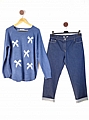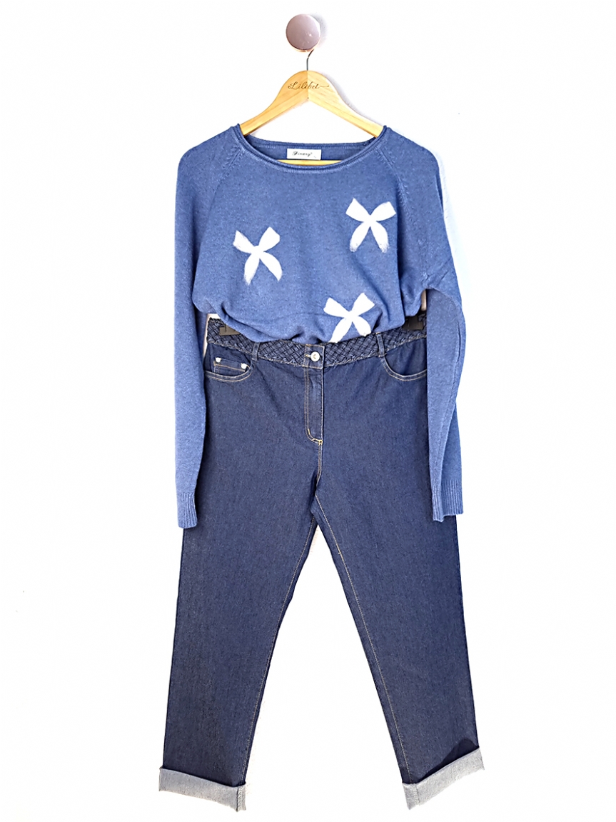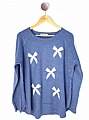 Πλεκτή μπλούζα με πέρλες και φιογκάκια - Σιέλ