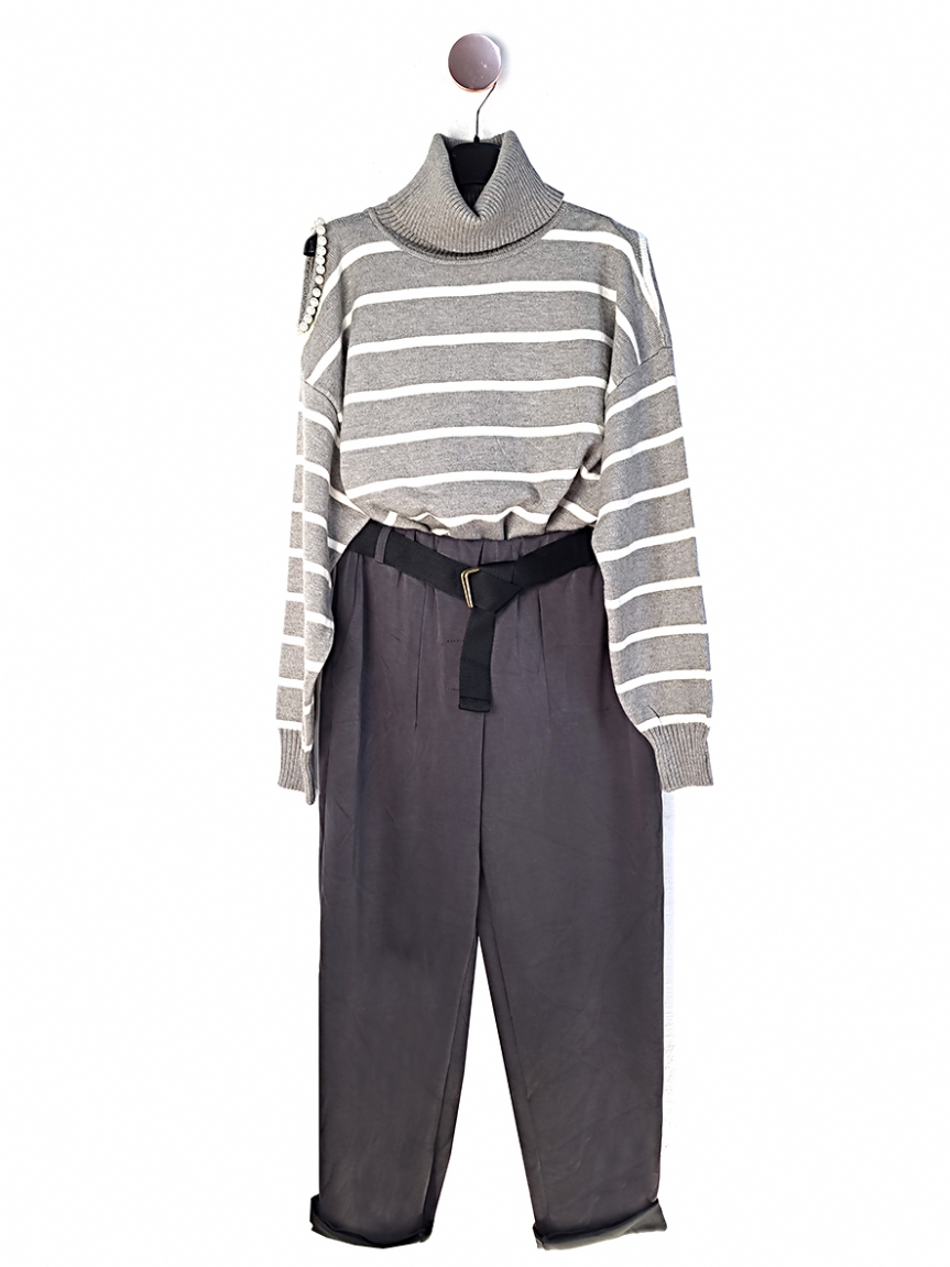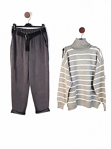 Παντελόνι με ζώνη ιμάντα - Γκρι