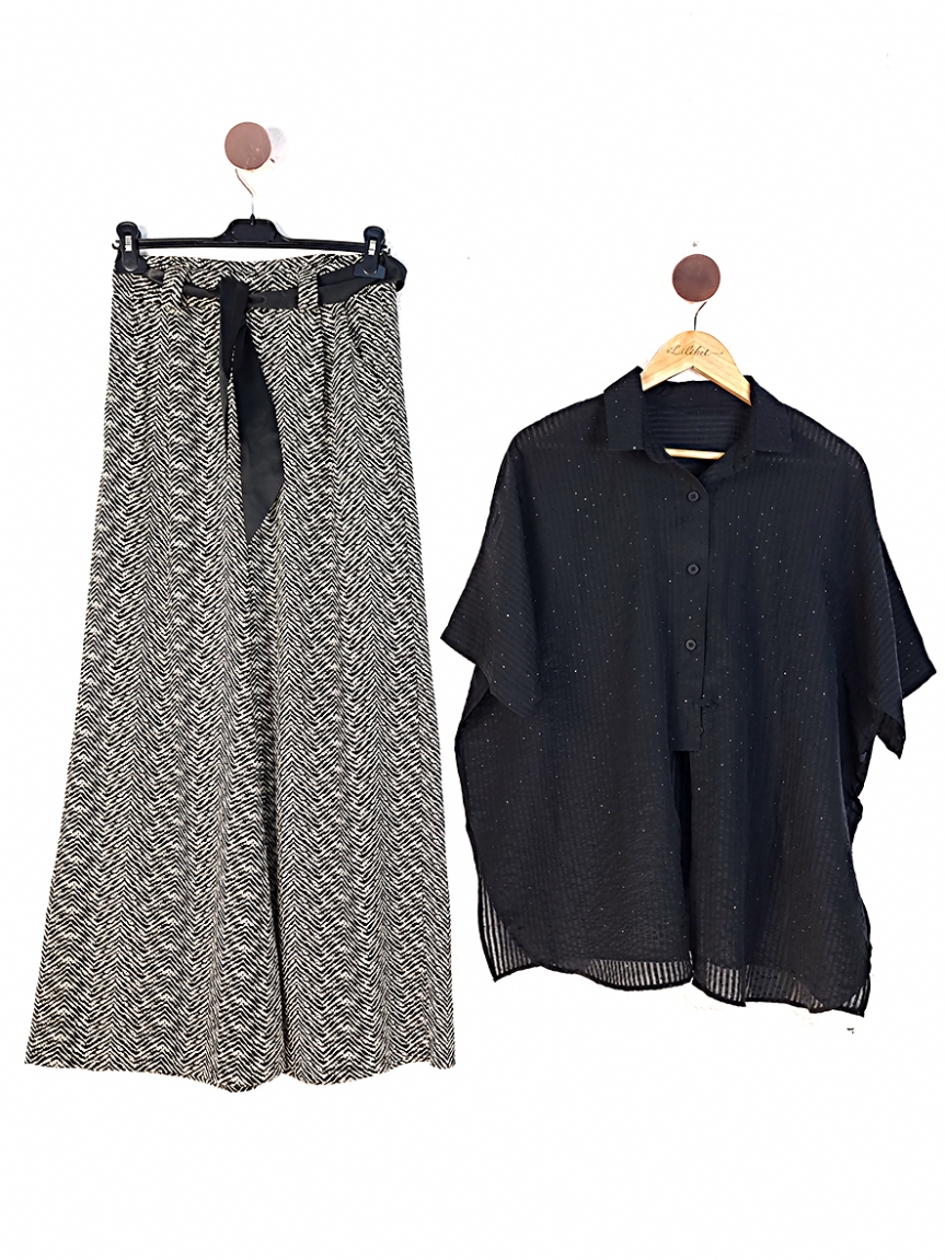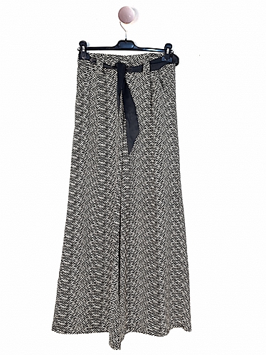 Παντελόνα με σχέδιο σαν ψαροκόκαλο με λάστιχο στη μέση και ζώνη.