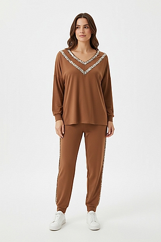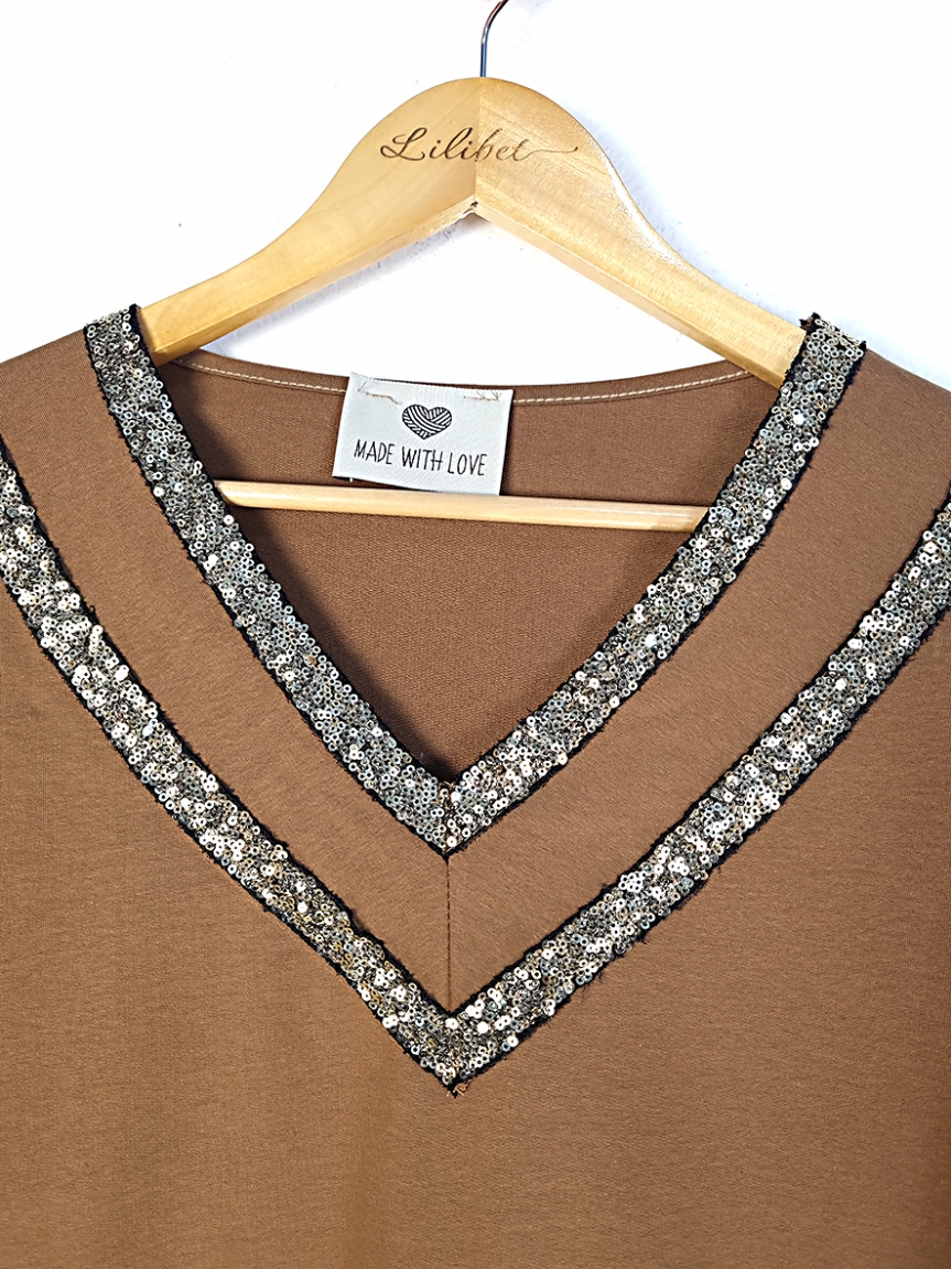 Σετ με σχέδιο παγιέτα - Κάμελ
