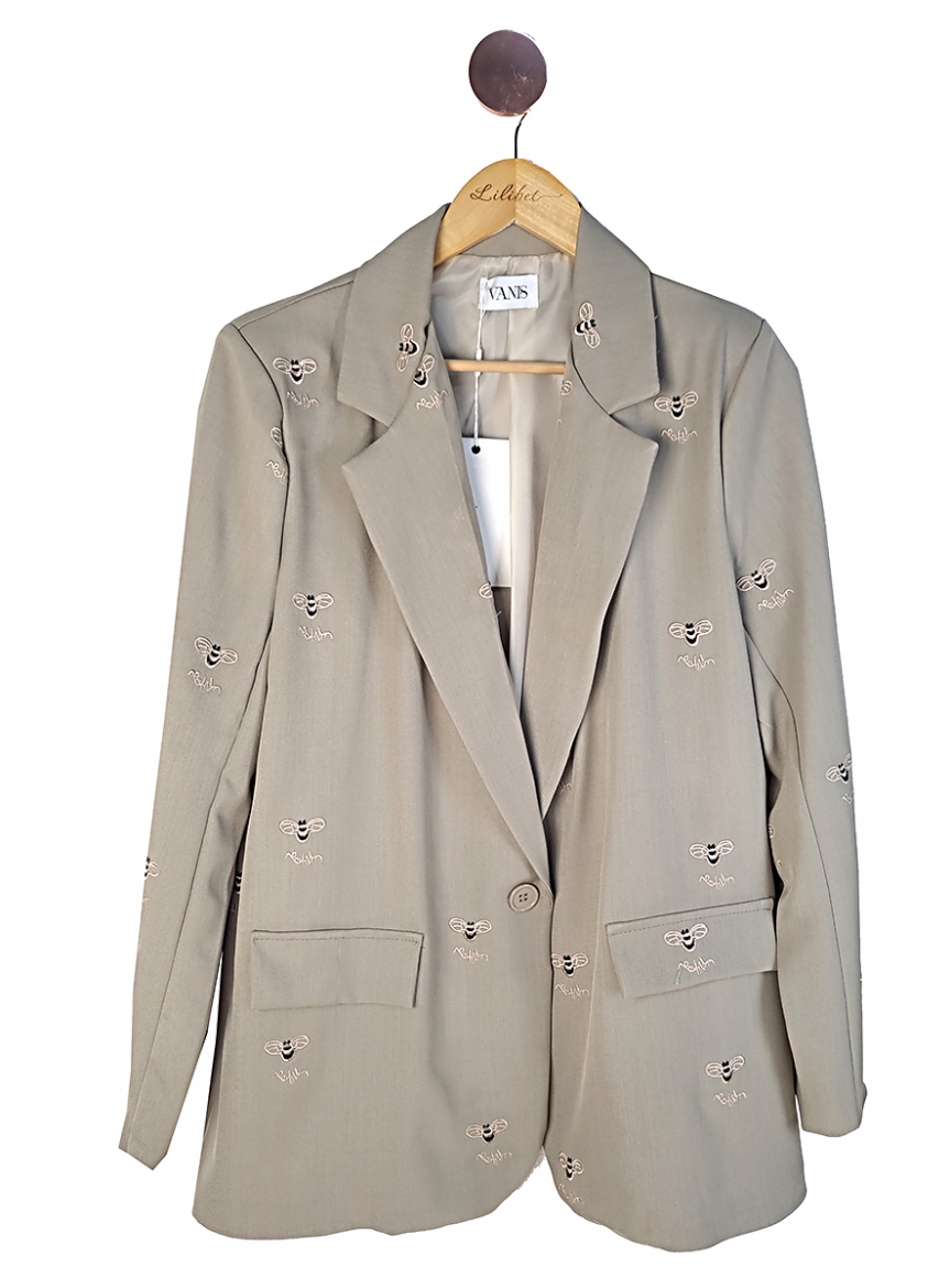 Το σακάκι διαθέτει πέτο, διακοσμητικές τσέπες (ψεύτικες) και φόδρα εσωτερικά για άνετη εφαρμογή.