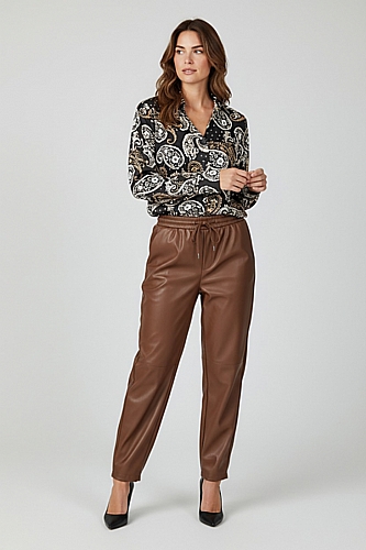 Σατέν πουκάμισο με πέτο γιακά και ανοιχτό ντεκολτέ.