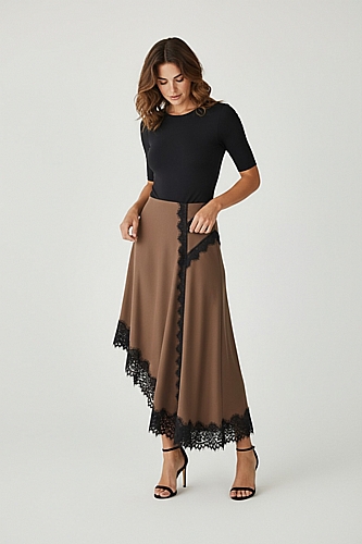 Φούστα με διακοσμητική δαντέλα - Καφέ