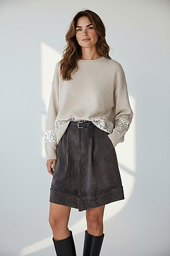 Πλεκτό με διακοσμητική παγιέτα - Μπεζ