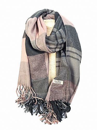Εντυπωσιακή απαλή και ζεστή πασμίνα σε καρό σχέδιο και τόνους του γκρι και του ροζ χρώματος.