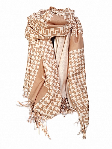 Εντυπωσιακή απαλή και ζεστή πασμίνα με σχέδιο και τόνους του μπεζ.