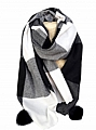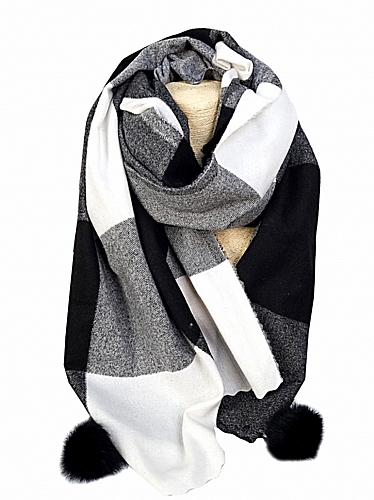 Εντυπωσιακή απαλή και ζεστή πασμίνα σε λευκό και μαύρο χρώμα με απαλές φούντες.