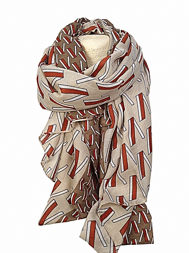Εντυπωσιακή απαλή πασμίνα σε μπεζ καφέ τόνους με σχέδιο.