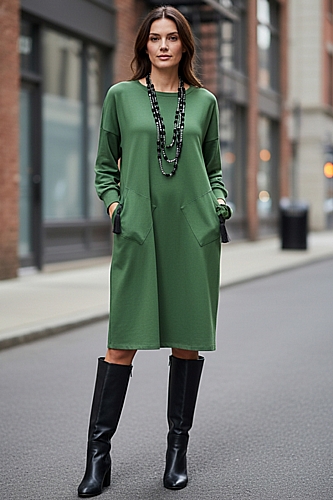 Πλεκτό φόρεμα με διακοσμητικά αποσπώμενα πον πον στις τσέπες.