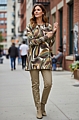 Κομψή μακριά μπλούζα τύπου τουνίκ με μοντέρνο abstract σχέδιο σε αποχρώσεις του χακί, καφέ και εκρού.